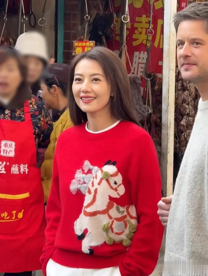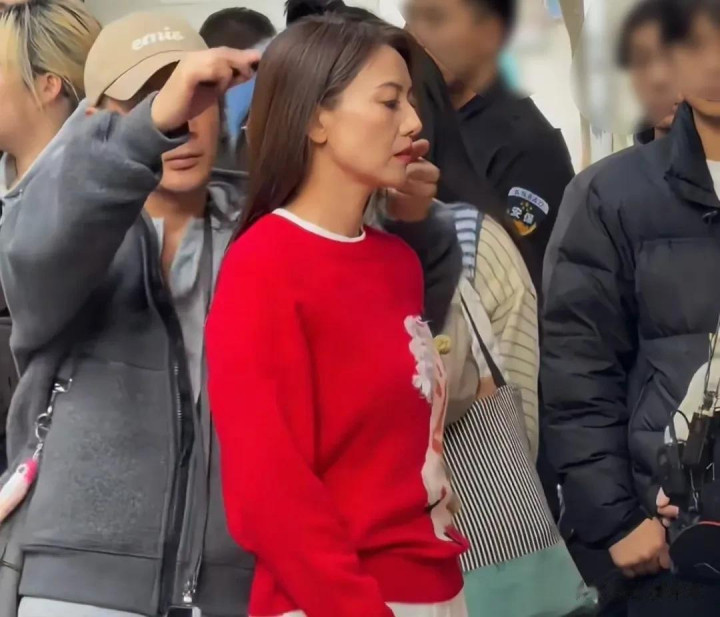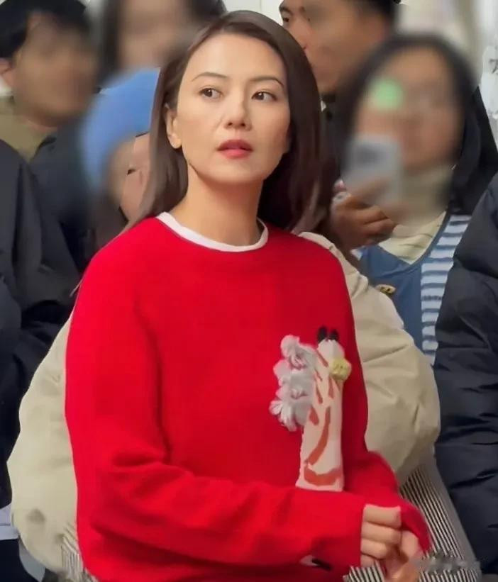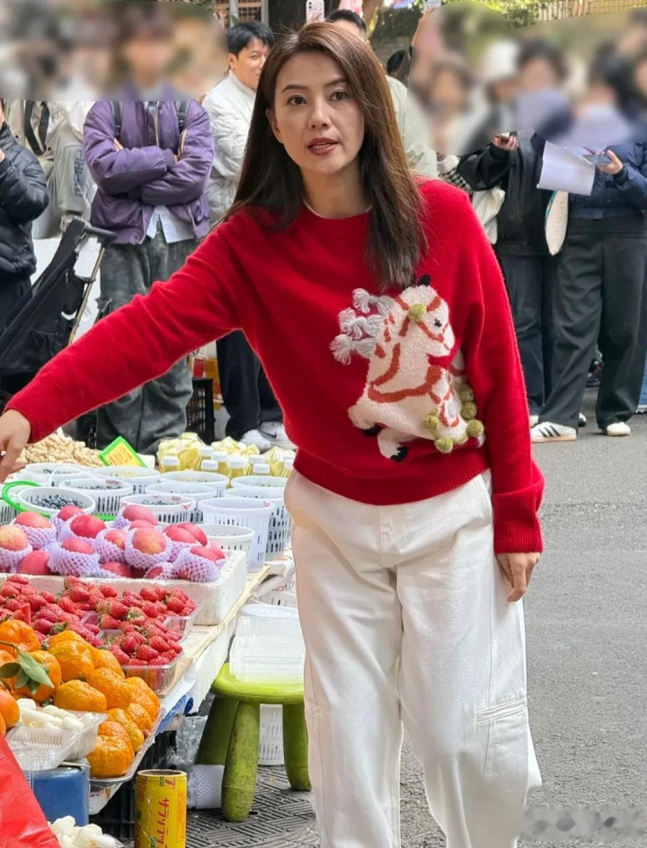 从网友拍摄的照片中可以看到,高圆圆身穿红色毛衣搭配白色休闲裤,一身搭配闲适自在。也许是为了贴合拍摄的新春主题,让广告更接地气,高圆圆并没有做什么复杂的造型,只是将长发随意地披散在肩头。即使是全身照,大家依旧能够看到高圆圆面部状态不佳,脸色蜡黄,法令纹格外抢眼。