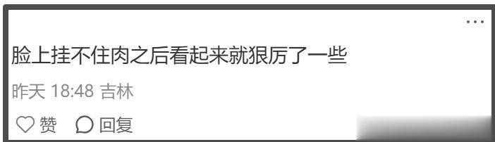 生图中,一旦高圆圆做出任何表情,她脸上的皱纹就会瞬间暴露,而即使她没有做表情,鼻翼两侧的法令纹也格外明显。另外,大家能清楚地看到她面部胶原蛋白流失严重,肌肉严重下垂。如果说之前脸颊有肉的高圆圆给人的感觉是温柔,那么现在脸上挂不住肉的高圆圆给人的感觉则是狠厉。