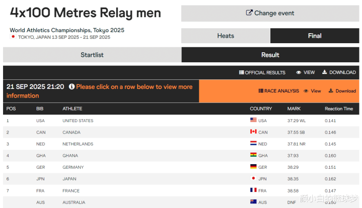 在东京田径世锦赛,主场作战的日本4X100接力队决赛以38秒35排在第六无缘登上领奖台,他们在赛前的口号是时隔三年重返世锦赛接力领奖台,结果他们仅仅排在第六位而已。
